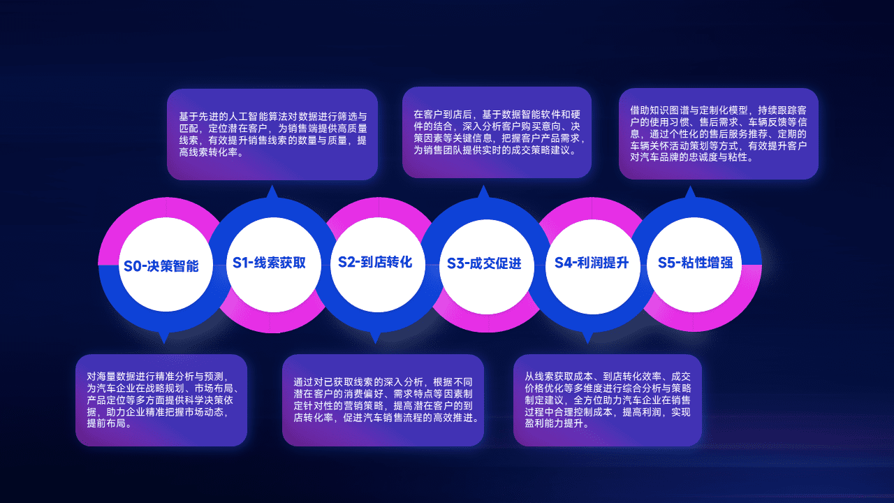 通过拓宽潜在客户来源、、优化线索分配并提高到店转化率,,,,以增强销售效率。。同时,,利用线索数据不断优化分析模型,,,,有效提升转化率,,扩大营销影响力。。。。